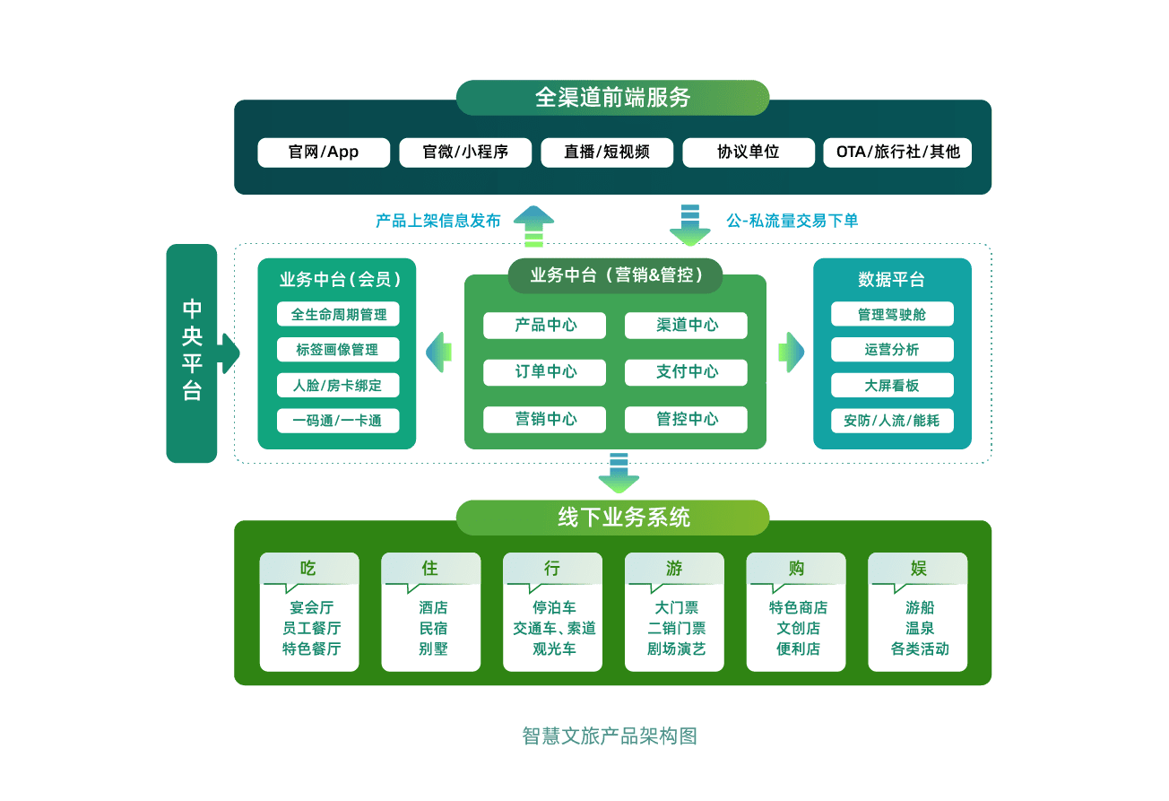 以绿云“四轮驱动”业务模型为核心,为文旅行业打造统一管理、智慧运营、创新发展的全业态·全场景·全链路的数字化解决方案。